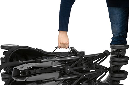 Die Babys werden mit einem 5-Punkte-Sicherheitsgurt festgehalten. Der Kinderwagen hat insgesamt 6 doppelte Schwenkräder aus Kunststoff. Die Hinteren haben eine Bremse. Auch den Doppelkinderwagen können Sie bequem zusammenklappen und im Kofferraum mitnehmen. Er wird mit einem Regenschutz und Einkaufskorb geliefert.